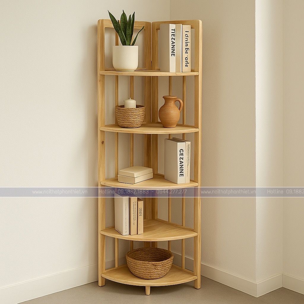 Kệ sách góc 5 tầng gỗ cao su – tối ưu không gian, bền đẹp tự nhiên