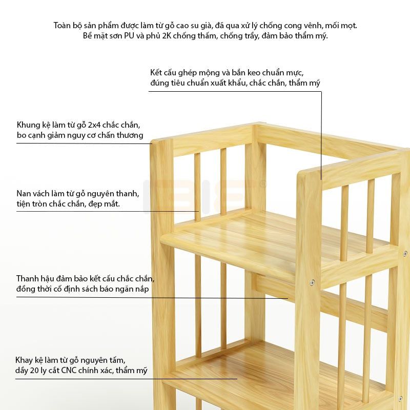 - Thanh hậu đảm bảo kết cấu chắc chắn, đồng thời cố định sách báo ngăn nắp.