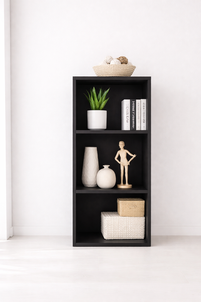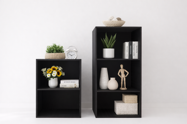 Kệ treo tường thiết kế hình khối gọn gàng, 2 ngăn tiện dụng giúp sắp xếp sách, decor, chậu cây nhỏ một cách ngăn nắp. Tông màu đen hiện đại, dễ phối với nhiều không gian như phòng khách, phòng ngủ, góc làm việc hoặc quán café.